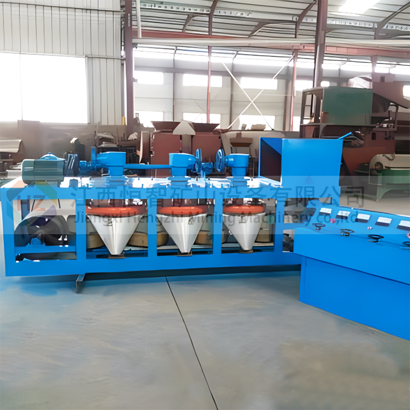 磁选机分500型,600型两种机型,用于分选粒度小于2-3mm的弱磁性矿物和稀有金属矿石的精选,是一种很重要的选矿设备。该设备适用于多种磁性矿物混合矿的分选,根据矿物的磁性差异,可通过调节各级磁盘励磁电流形成不同强度的磁场来对矿物进行分离,也可调节各级磁盘与被选矿粒之间的感应距离来得到不同的磁场感应强度。更多技术咨询88888888671温工。