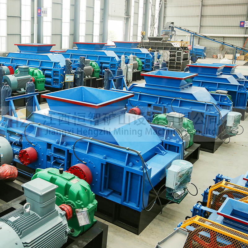 对辊破碎机配置两个碾辊,根据用户需要的粒度,辊面分为平辊面和堆焊辊面两种机型,若物料的抗压强度大于200Mpa时均可选择加重机型。