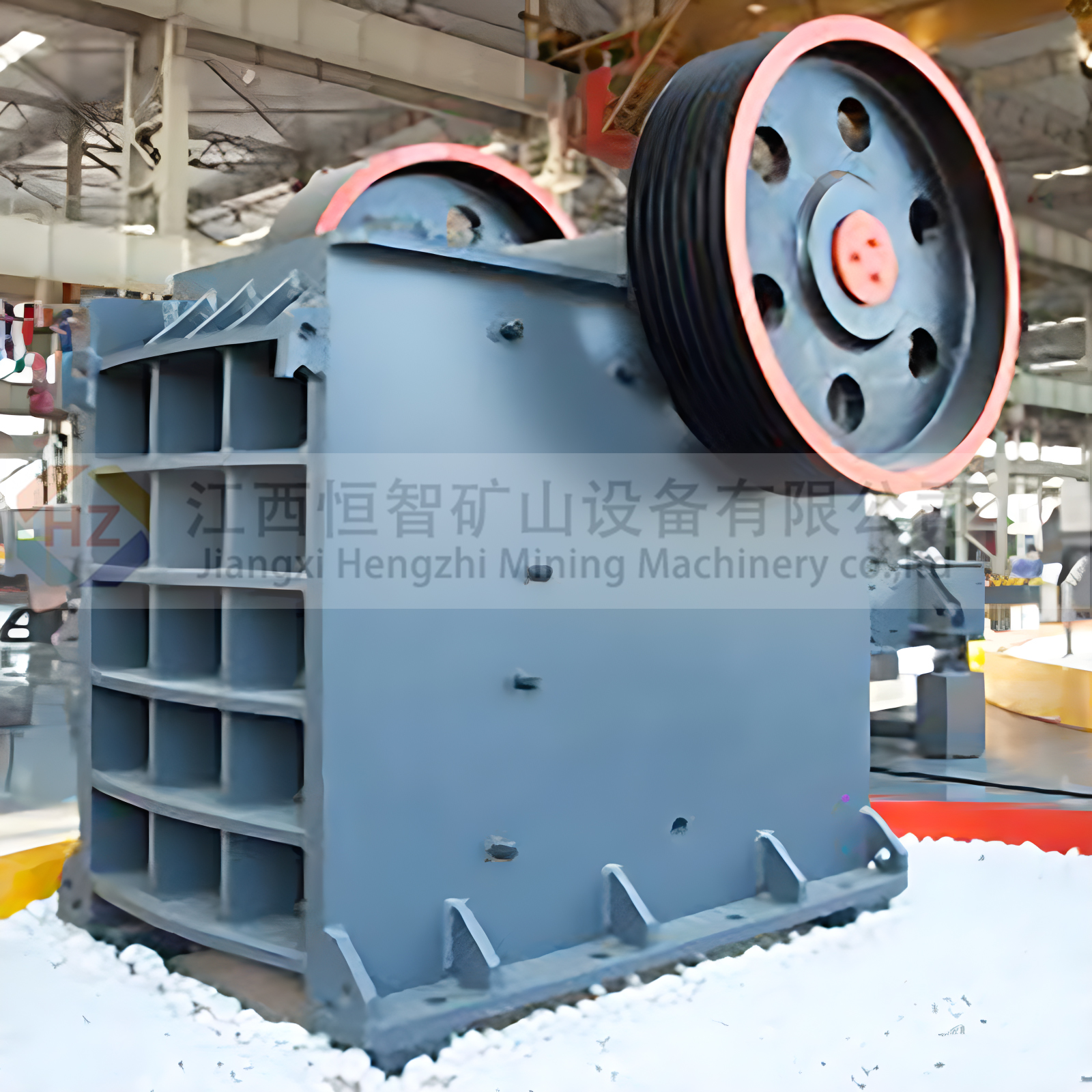 本机主要由机架、动鄂、偏心轴、鄂板、肘板等。电动机通过三角皮带传动偏心轴多使动鄂按照已调整好的轨迹进行运动)从而将破碎腔内的物料予以破碎。