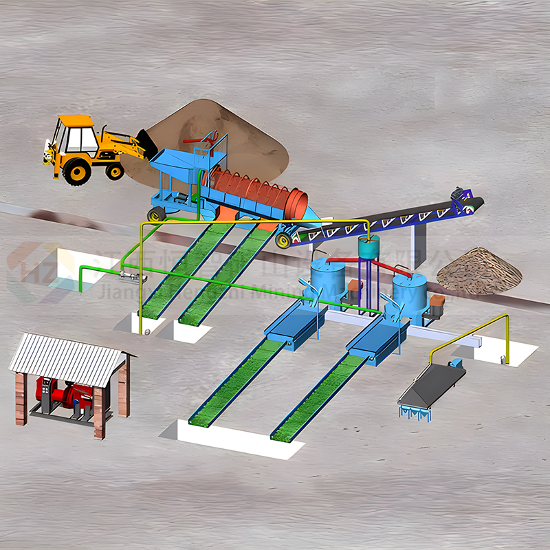 本设备可在挖沙淘金船、移动式淘金机、固定式淘金设备、沙场洗砂机外接等做为淘金系统使用。
