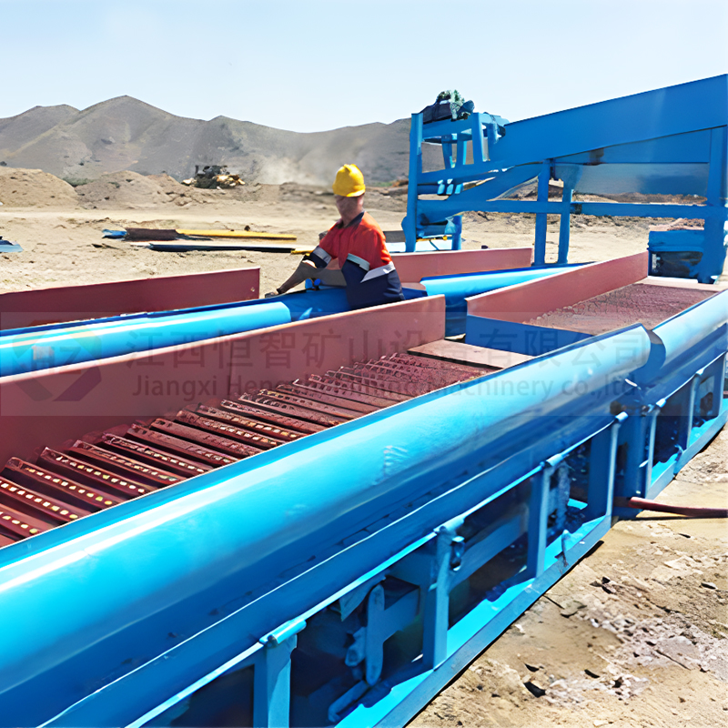 溜槽淘金是利用金与沙子比重的差别进行分选的一款矿物重选设备,其工作原理是:矿浆流经溜槽,比重大的金沉淀于底层,沙子等比重小的浮于_上层随水流排出工作区。 原先的固定式溜槽是用淘金毡提金,由于溜槽板结、淤槽等现象,淘金毡提金的净选率较低这些缺点,鼓动式溜槽有针对性的进行了克服--它的底板用橡胶板制成,利用机械鼓动底板,使底板缓慢鼓动,克服泥沙板结,周期性鼓动,完成分层和排沙,从而使得净选率提高。 经过多年的改进和对比试验,鼓动式淘金溜槽以其结构简单、工作可靠、净选率高等优点,近年来和淘金水套离心机等成为淘金机械中的主流之选。
